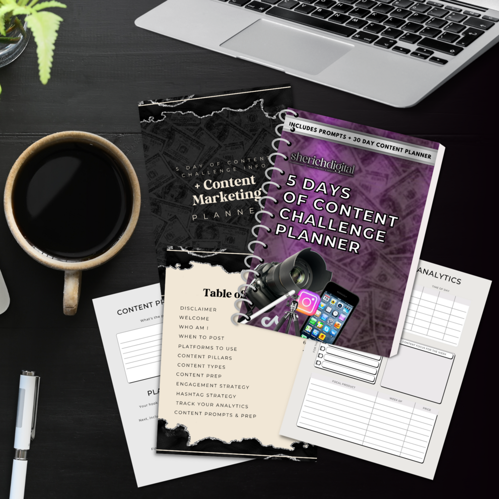 This is a 5-day virtual challenge + planner to help you strategically execute your content marketing plan.