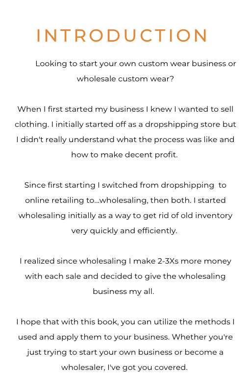This book will help you learn how to Jumpstart your Custom Wears Wholesale or Retail business, how to get started, how to find vendors, design the pieces, setting up your website and more.